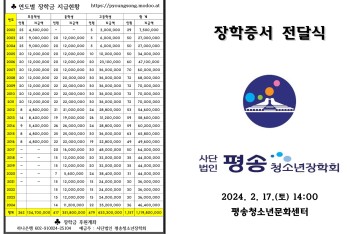 2024년 평송청소년장학생 선발 명단 2024.1.26